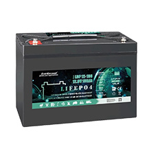Shenzhen Everexceed’s LDP12-100 LiFePO4 battery has 12.8V nominal voltage, 100Ah rated capacity, 1,280Wh typical energy, and 100A maximum charge and continuous discharge current rating. It measures 328x172x220mm, weighs 11.1kg and has M8 terminals. This unit has UL 1642 and 2054 certifications.