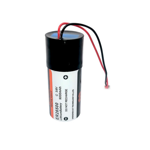 The ER26500/HPC1520-7325 from Shenzhen Richlight Technology Co. Ltd is a lithium-thionyl chloride (Li-SOCl2) battery for water meters. It has 3.6V voltage, 9,000mAh capacity, 8,600±400mAh typical discharge capacity at 2mA and -40 to 85 C operating temperature.