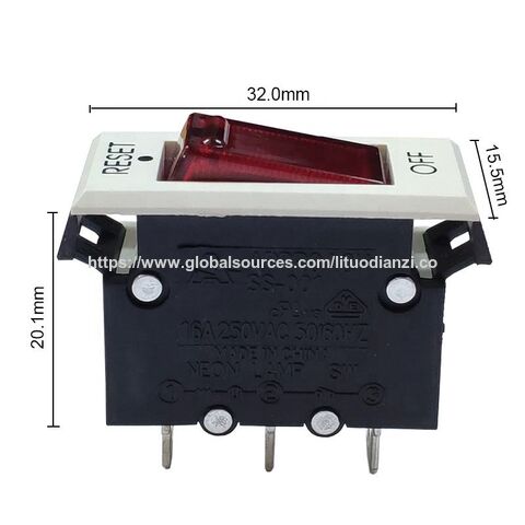 This safety device has a rated current of 2 to 20A, rated voltage of 125/250VAC, contact resistance of ≤100Mohms and insulation resistance of ≥100Mohms. The operating temperature is -20 to 85 C and the electrical life span is 10,000 cycles.