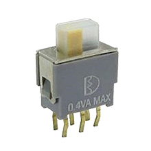 This DP3T slide switch from Yat Shun, model MSS4200R04, has 2mm travel, 50 to 450gf operating force and 10,000-cycle life span. Its maximum contact resistance is 30mohms, minimum insulation resistance 100Mohms and 500VAC/min withstand voltage.