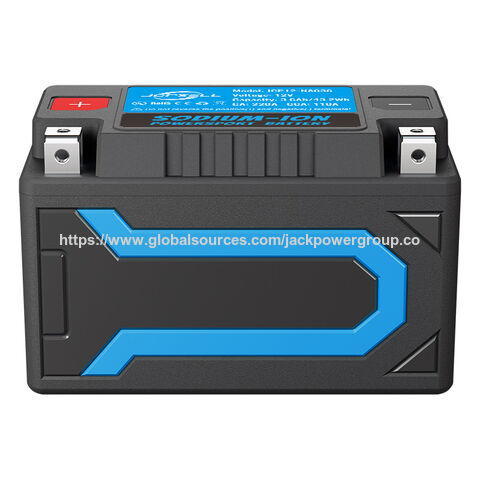 The JCP12-NA044D from Huizhou Jack Power Technology Co. Ltd is a sodium-ion battery for motorcycles. This 4.4Ah or 52.8Wh unit has 12.8V voltage, 240A cranking ampere and 100A cold cranking ampere ratings. It is IP65-rated, measures 150x87x93 mm, weighs 1.1kg and has a one-year warranty.