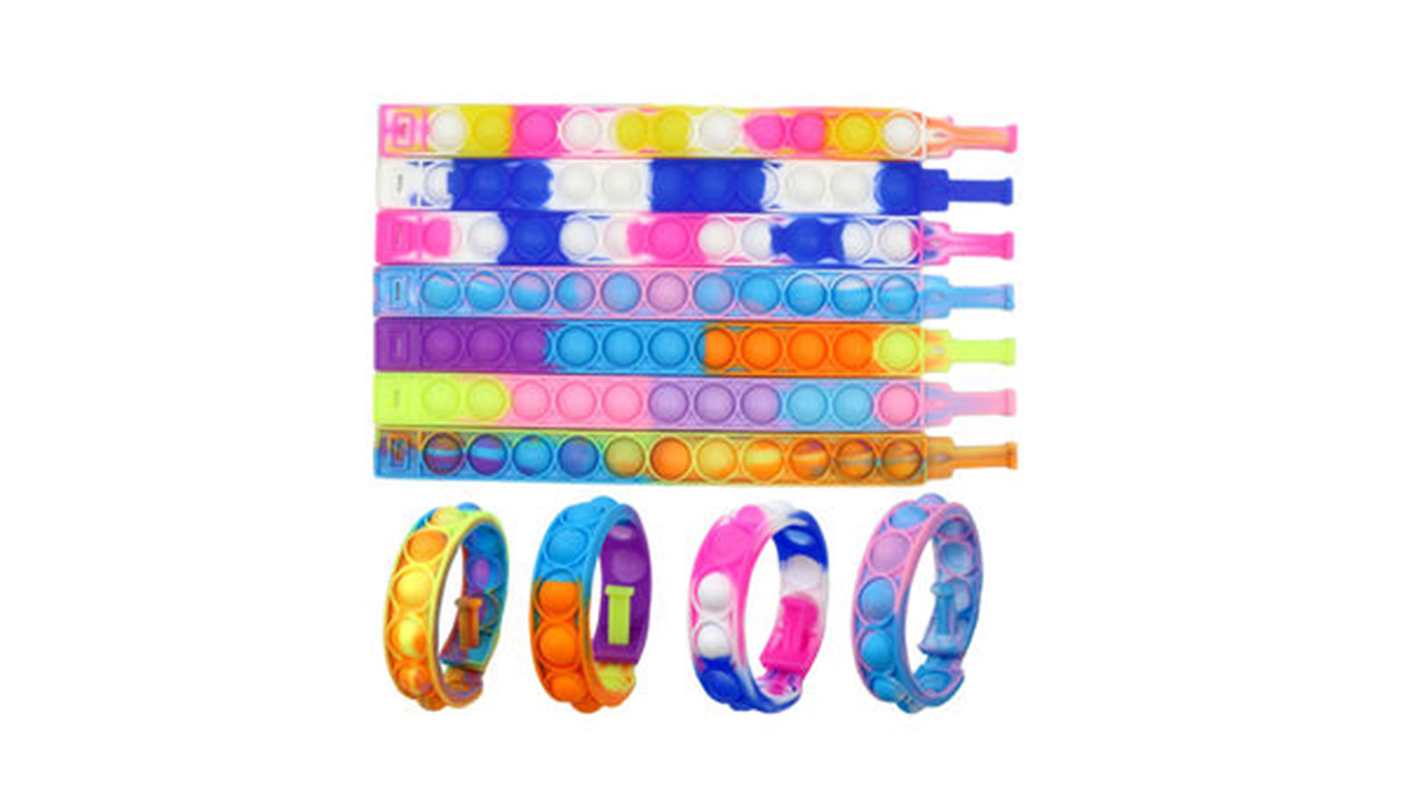 This push-pop silicone bracelet from Jinjiang Baojia, the BJ-0003-24, comes in mixed and plain colors.