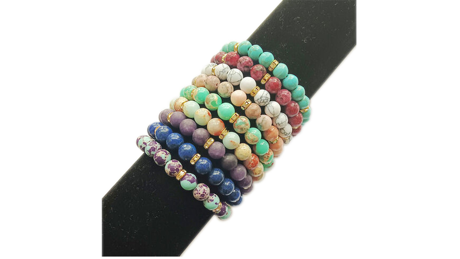 This beaded bracelet from Yiwu Fengzhi, the FZCO-3295-2, consists of 8mm semiprecious stones and weighs 20g.