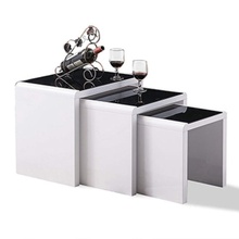 Made of MDF and glass, this GSF145 three-piece nesting coffee table set from Global Star has a lacquer finish. Table dimensions are 55x40x48cm, 46x35x43cm and 36x30x40cm. The supplier requires a minimum order of 100 sets for delivery in 30 to 45 days. Price ranges from $22 to $45.