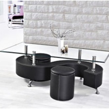 The S-shaped tempered glass coffee table from Bazhou Longkang, the FCT-Z19, comes with two stools. It measures 1,300x700x450mm and has a glass thickness of 8mm. An order quantity of 100 pieces is for delivery in 25 to 35 days. Price ranges from $43.72 to $45.83.