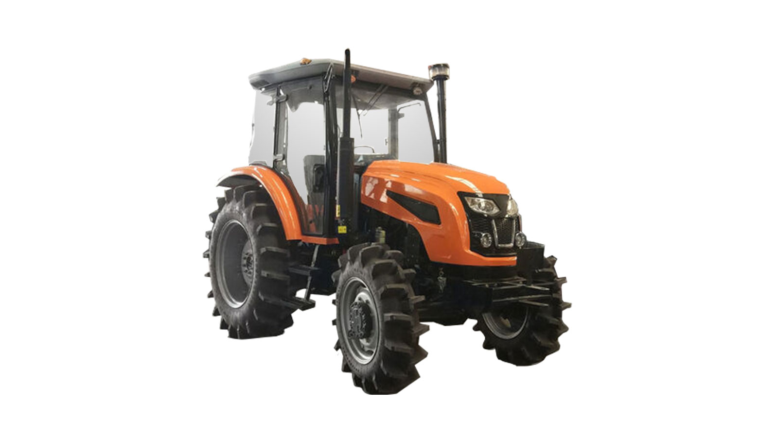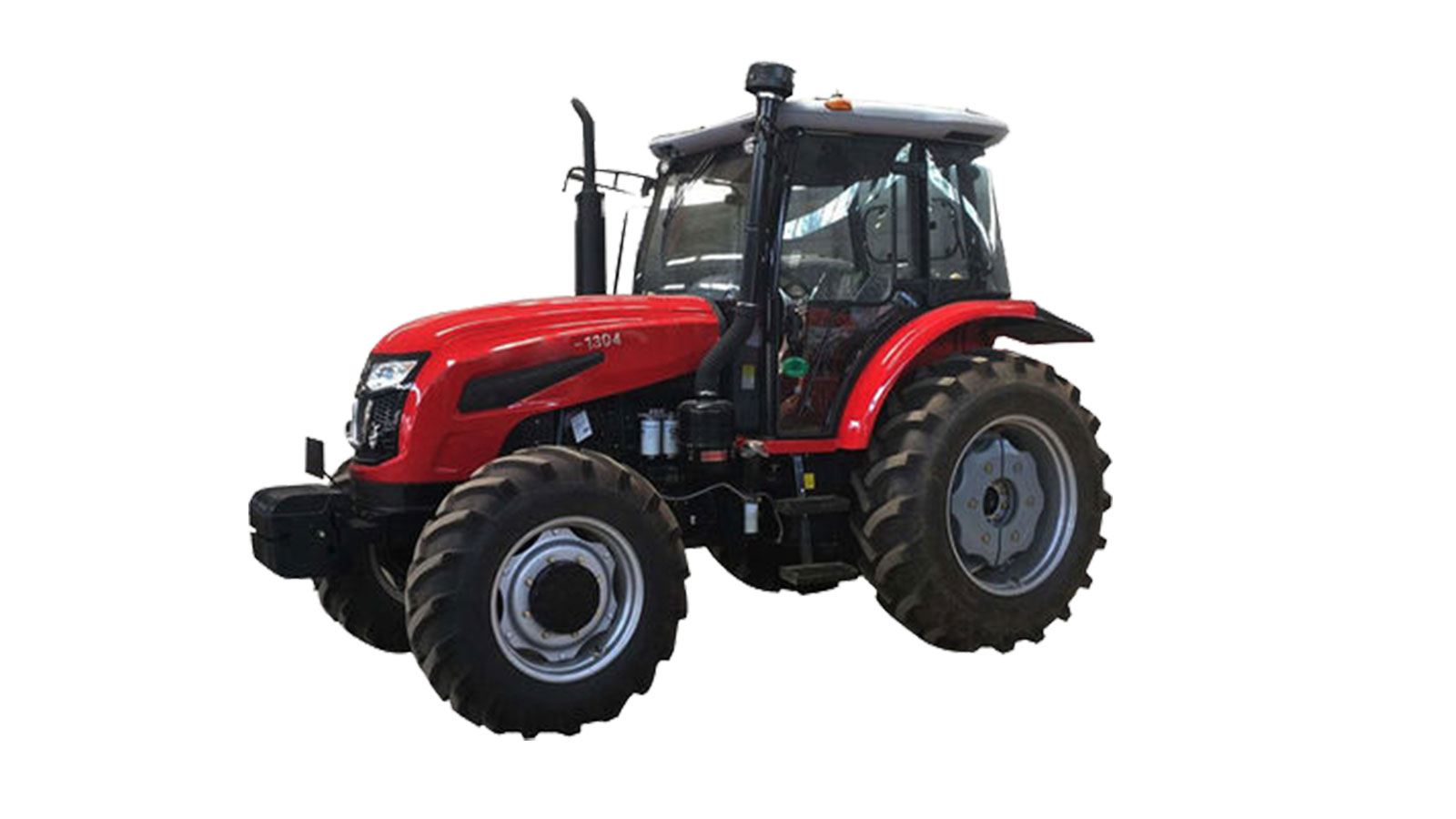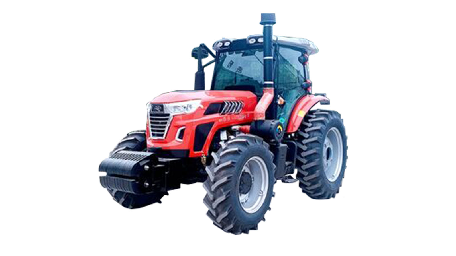 The Sinomada-LT1004 from Sinomada is a 4WD farm tractor with a 73.5kW, 2,200rpm-rated diesel engine, double clutches, independent PTO device, hydraulic steering and hydrostatic disc-type brakes. It is available in 80, 90 and 100hp variants. This machine is 4,320x2,038x2,810mm.