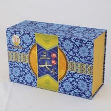 This multilayer Christmas bakery gift box, the Gathe-Romi1401, can be made of grey board, art, kraft, white card, special or metallic paper. It comes in CMYK or Pantone colors and buyer-specified dimensions. The order quantity of 100 pieces is for delivery in three to 15 days. Price ranges from $0.08 to $0.11.