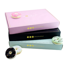 Made of corrugated cardboard, this QY-F-D-P-B donut box from Dongguan QY comes in custom sizes and prints. A minimum order of 1,000 pieces has a lead time of 15 to 25 days. Price ranges from $0.30 to $0.80.