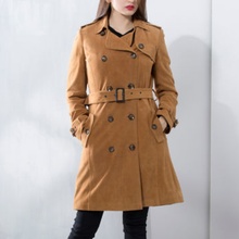 Dalian Donice offers this DN2019032104 women’s trench coat made of genuine sheepskin leather and 100 percent polyester lining. It has double-breasted front buttons, two side pockets, notch lapels, belted cuffs and an adjustable belt. The 100-piece minimum order has a lead time of 55 to 60 days. Price ranges from $68 to $75.