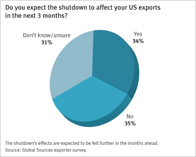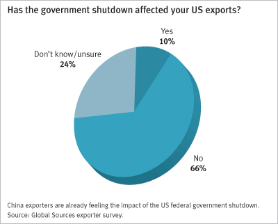 Ten percent of the 112 exporters that participated in Global Sourcesâ survey conducted from Oct. 9 to 11 said they were already feeling the impact of the federal shutdown on their US business.