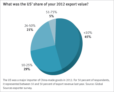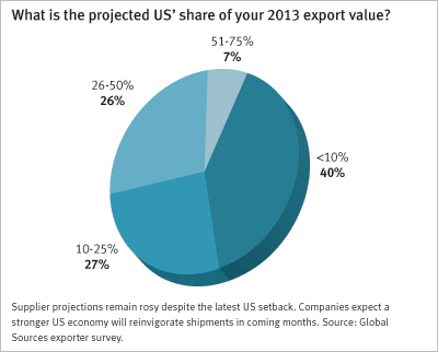 The patience of China suppliers stems from their generally positive outlook. Comparing 2012 export sales and 2013 projections, many continue to consider the US a major revenue generator.