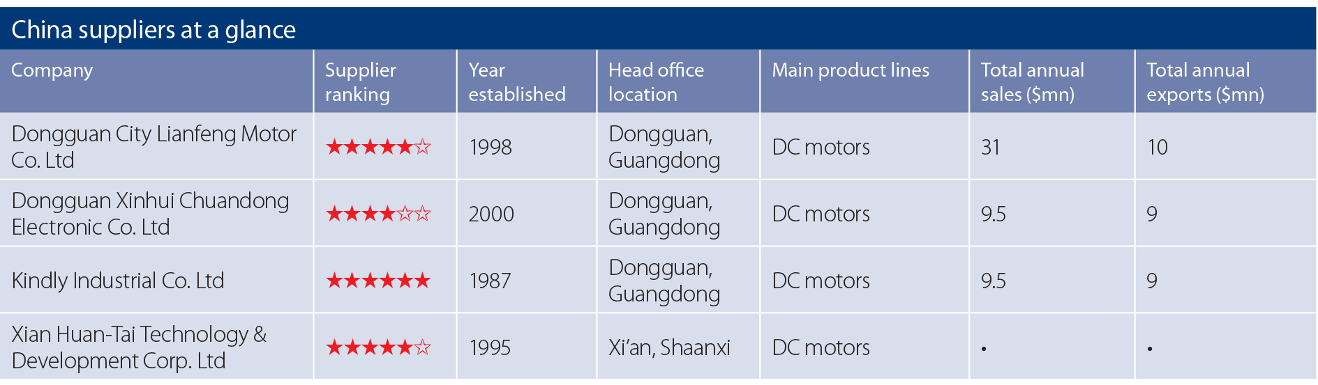 There are more than 500 manufacturers of DC motors in China, including companies with investment from overseas, but only a fifth cater to the EV sector. Broad Ocean, Wolong, Jiangxi Special, Zhejiang Founder and Shenzhen Zhaowei are some of the leading homegrown suppliers. The rest are small and medium operations that lag behind foreign rivals in terms of technology.
