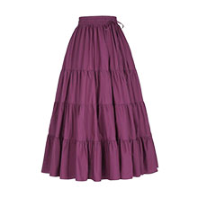 Sarthak Fashion’s 01 women’s loose skirt is made of dark-pink pure cambric cotton in 60x60s. This four-tiered garment, measuring 40in in length, has a drawstring elastic waistband. MOQ required is 200 pieces and lead time 45 days.
