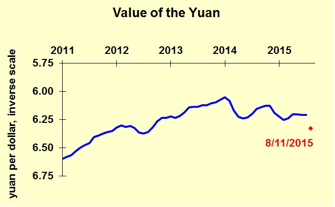 China sprung a financial surprise Tuesday, Aug. 11, when it announced it would devalue the yuan. The same day, the currency fell 1.9 percent, the largest one-day drop in 10 years, to close 6.32 against the US dollar. It dropped a further 1.6 percent Wednesday, Aug. 12.