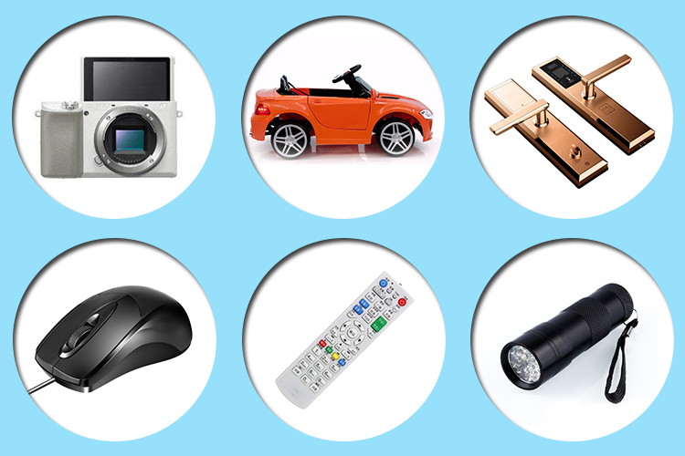 Camera, electrical toy, wireless door bell, torch, multimeter, remote control, fire alarm system and so on.