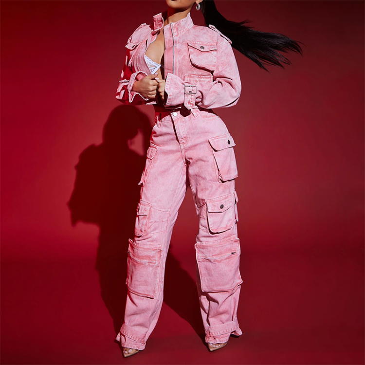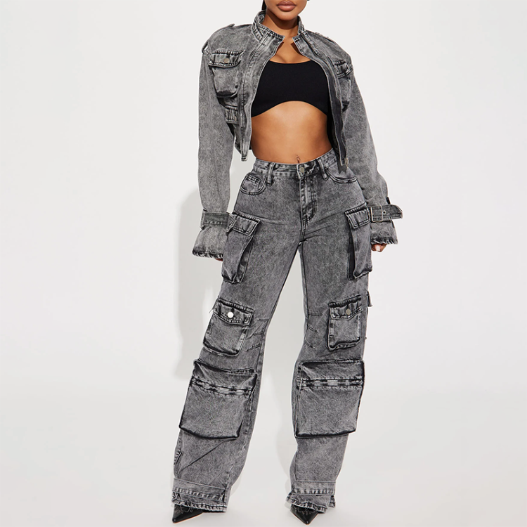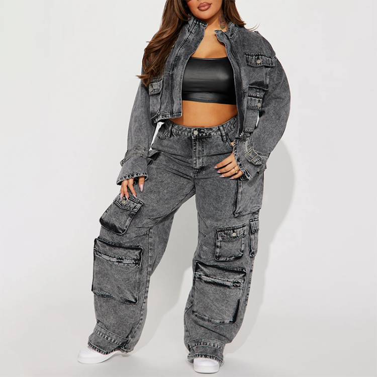 Product Name | Streetwear Women's Fashion Casual Washing Denim Jacket Cargo Pants Two-piece Set Acid Wash Tracksuits For Women | ||||