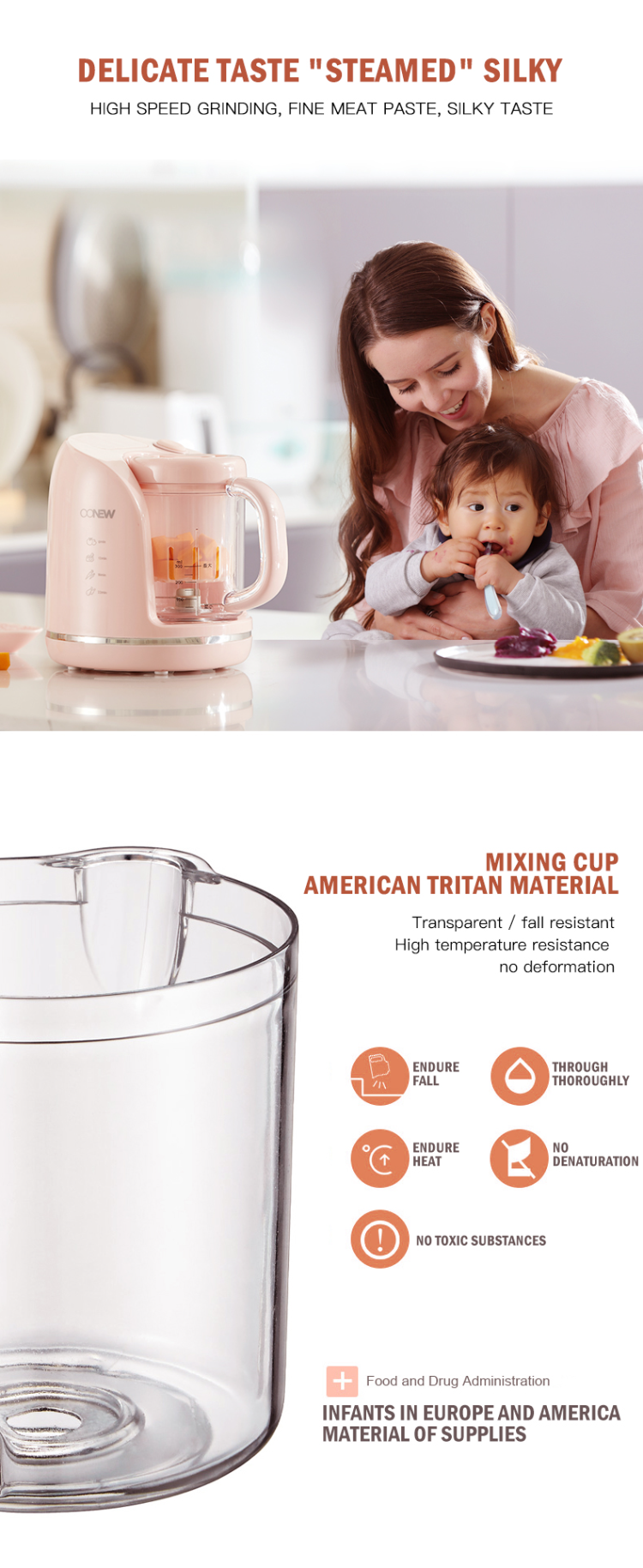 1-4 in 1 Steam Cooker and Blender, 2-Cook and process fresh preservatives free baby food in 15 minutes or less.