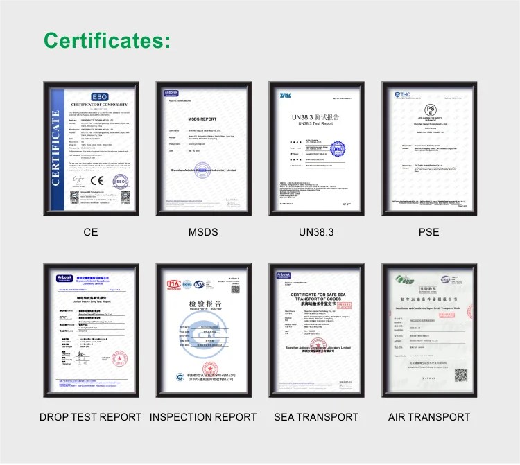 A8: We can provide CE,ROHS,IEC62133,MSDS,UN38.3 if your need.