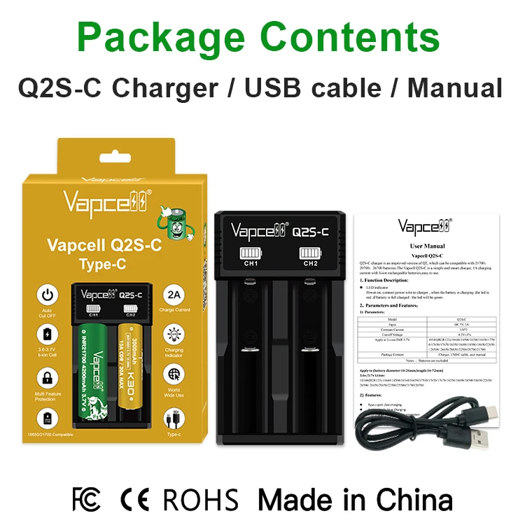 | Model Number | Vapcell Q2S-C charger | Brand Name | Vapcell Q2S-C charger |