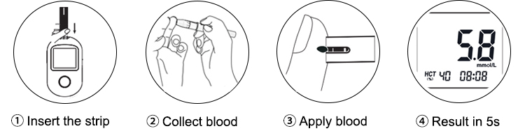 Only 4 simple steps, you can easily measure blood sugar, suitable for Adults, infants/children, pregnant women, and people with anemia to measure blood sugar at home or outside.