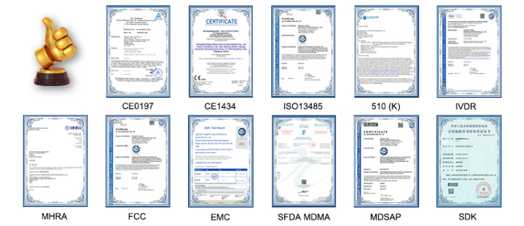 A: Most of our products have CE, ISO, 510(K), RoHS, FCC, REACH and EMC, MDSAP, etc. Don't worry about the Certificates!