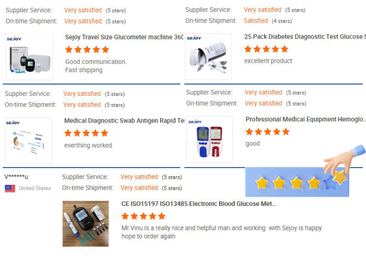Sejoy blood glucose monitor requires just 0.6 µl blood sample and just 5 seconds to get a glucose value after applying the sample.