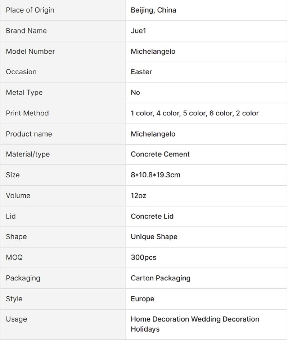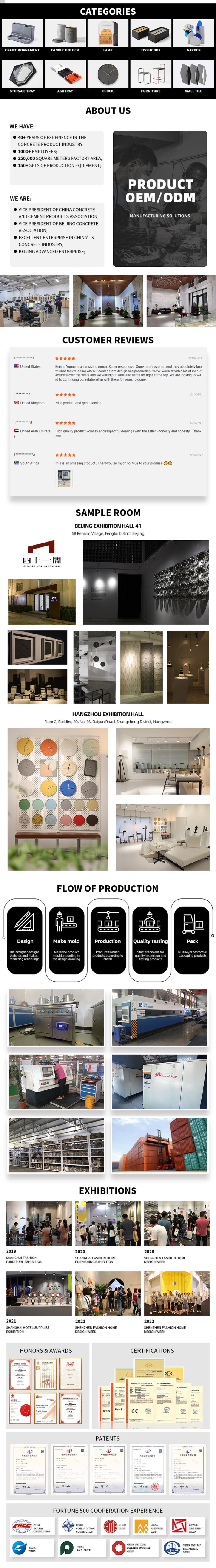 We are a manufacturer of concrete and plaster products integrating R&D, design, production and sales. Support full customization and door-to-door delivery, and support free certification for large-volume product orders.