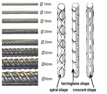 Rebar is the common name for hot rolled ribbed steel bars. The grade of ordinary hot-rolled steel bar is composed of HRB and the minimum yield point of the grade. H, R, and B are the first letters of the three words Hotrolled, Ribbed, and Bars respectively.