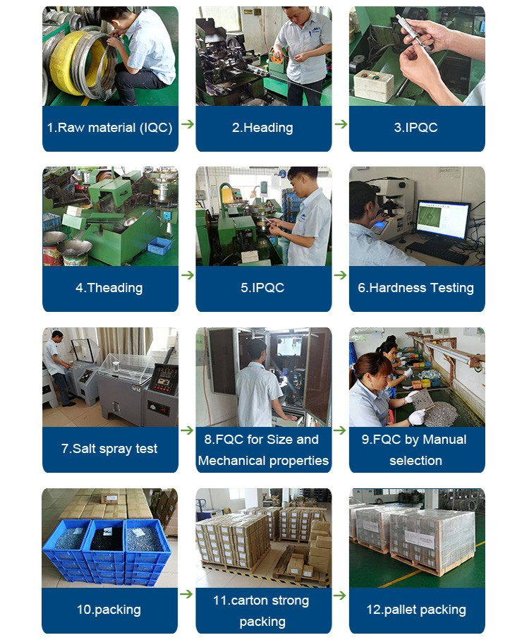 A: Our production equipment is a new imported equipment. We have a group of skilled workers who have been working for more than 10 years. Their production experience is very rich and their skills are very skilled. The screws can be 30 million pcs/month. We have sufficient funds to ensure the normal operation of the factory.