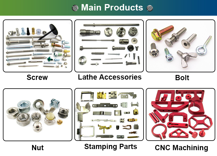 A1: Our main products are Electronic screws,Sems screws,Tapping screws,Chicago screws,Shoulder screws etc. Special Non-standard studs,Turning parts and High-end precision complex CNC Machining parts etc.