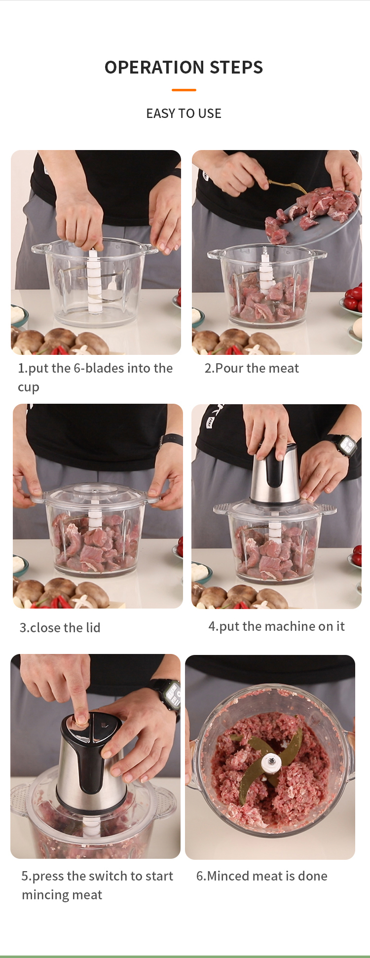 | Function | Multifunction/Quiet operation/Low noise/Grind meat/Cook/Chopping/Cook |