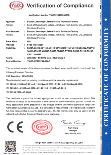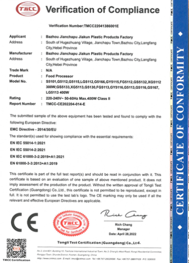 Jiakun Plastic Products Factory in Jianchapu Town, Bazhou City was established on June 24, 2016. The enterprise address is located 20 meters south of the west of memorial archway, Yuanli Village, Jianchapu Town, Bazhou City, Langfang City. It is a collection of research and develop-ment, production and sales as one of the industry and trade company.The main production of meat grinder, Wall breaking machine, food chopper,meat chopper,food processor,juicer,blender and other household products.
