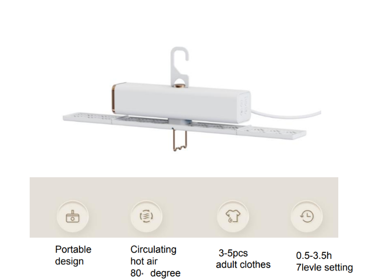 Mini dryer1. Multi-purpose , drying clothes / cup warming / shoe drying 2.0.5h-3.5H timing setting could be choose freely. 3. Portable , do not occupy an area,suitable for household /travel/camping 4. 0.5 hours of extremely fast drying, energy efficient.6.Shoe and quilt warming tube (optional): quilt warming, high