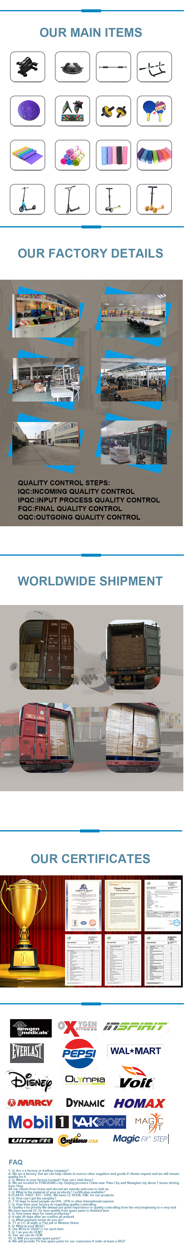 Founded in 2006 and located in Yongkang City, the company has more than a dozen stable suppliers. The company has a professional R& D department and quality control department. Our company has its own patented products, and most of our products have passed GS,RoHS and CE certification. Our main markets are the United States, Britain, Germany, France, Italy, Poland, the Netherlands,Spain, Turkey, Hungary, Russia and Greece.