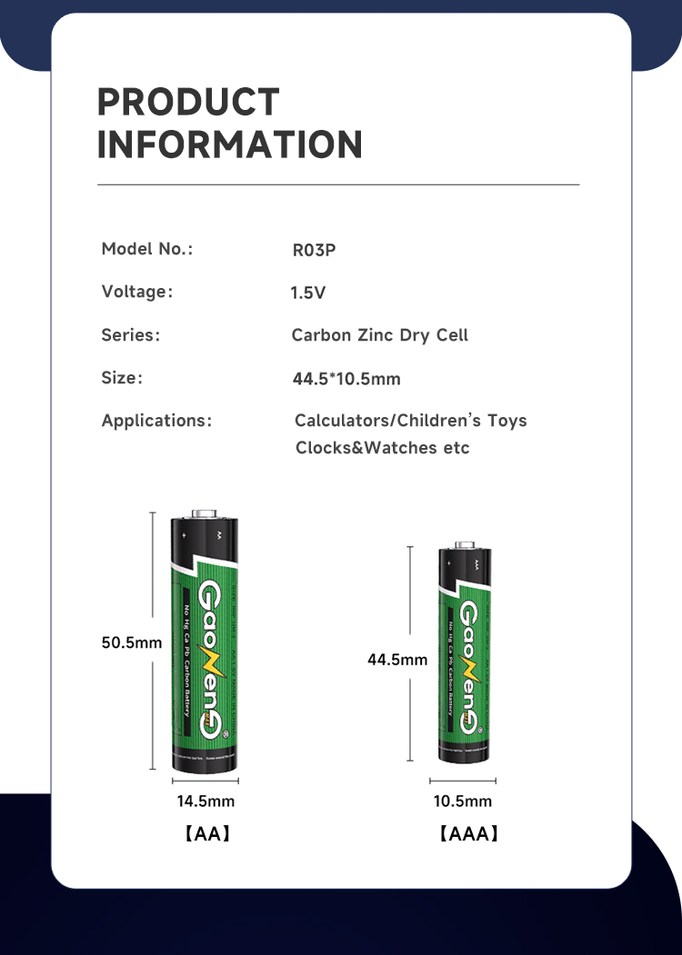 | Packaging Details | packing details of OEM private label 4pcs blister card shrink china factory lr6 1.5V aa aaa battery sum 3 zinc carbon battery c size um2 batteries for mouse remote control battery 60pcs to one color box, 720pcs to one carton |