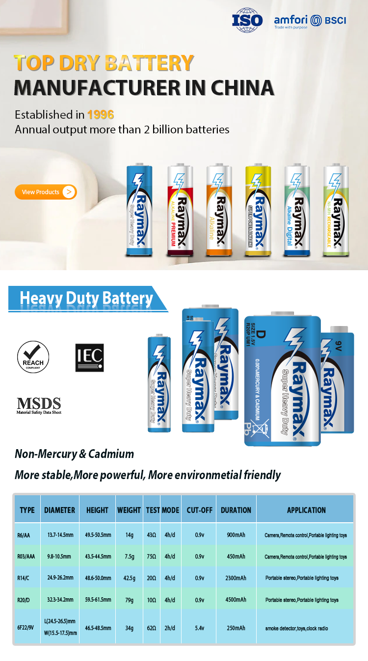 | Porduct Item | Raymax 1.5 R14 heavy duty battery (aluminum film jacket) |