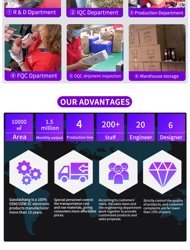 We have mature R&D team, patented products, the license of import & export and professional certifications, such as, CE,RoHs, FCC,