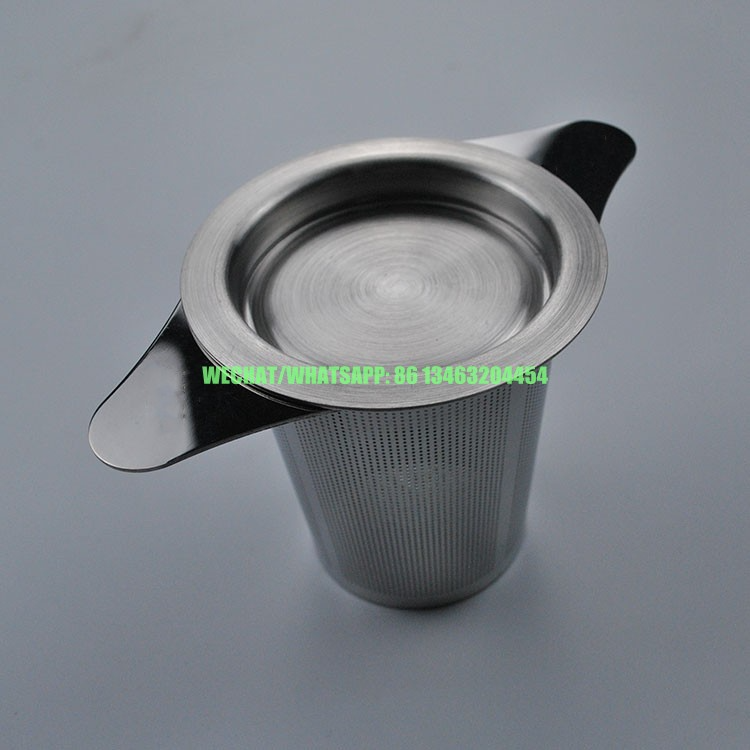 Food Grade 7.5cm Height Gold 304 Stainless Steel Loose Leaf Tea Herb Strainer Infuser With Double Handles and Lid