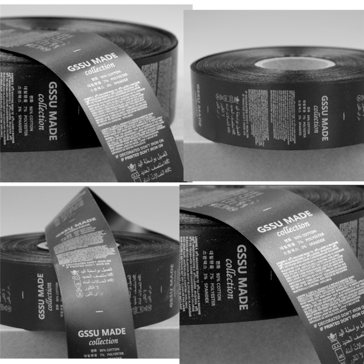 Luxury clothing labels custom printed black silk ribbon label washing care label printing for clothing
