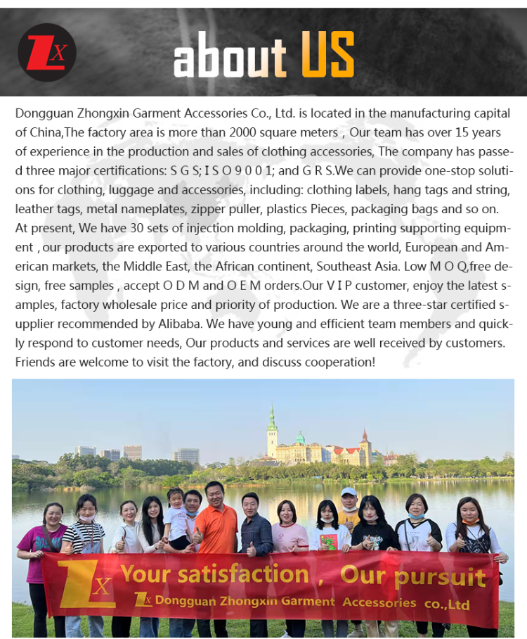 1:We can provide one-stop solutions for clothing, luggage and accessories.2.. Accept O D M / O E M ,Accept Mini Order.3. Normally 500~5000 PCS in One PP Bag or Small Box. Accept Your Special Demands.